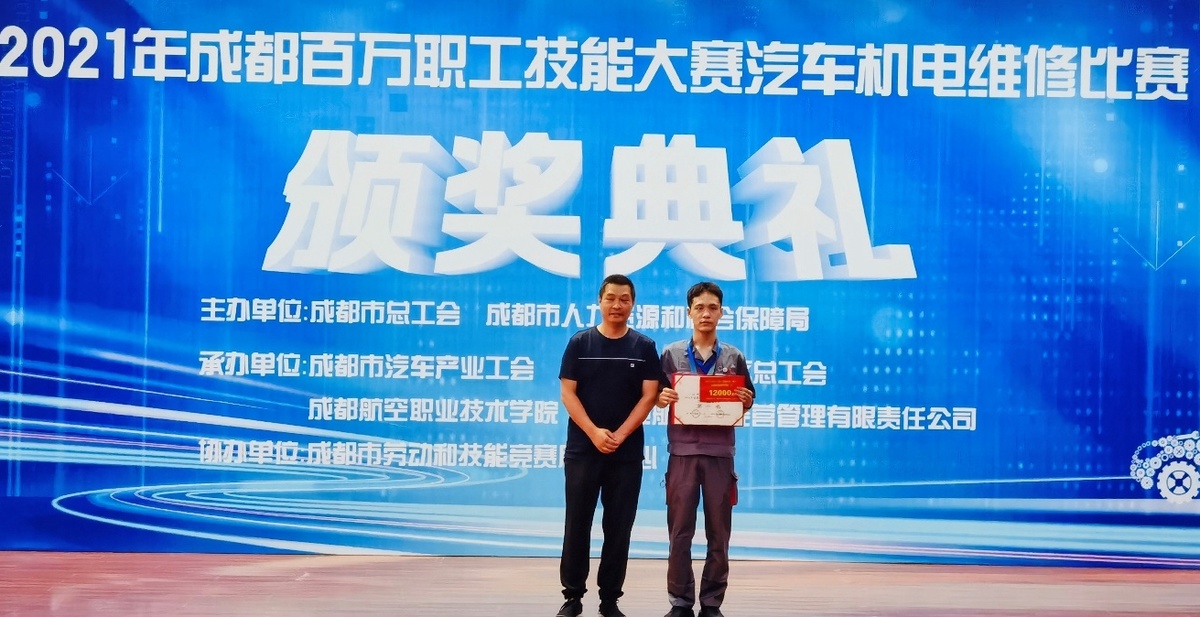 9月30日,为期3天的2021年成都百万职工技能大赛汽车机电维修比赛在龙泉驿区落幕,来自全市38家企业的100余名一线职工在成都航空职业技术学院切磋技艺。经过激烈比拼,来自龙泉驿区成都万通有限公司的职工文韬摘得桂冠。