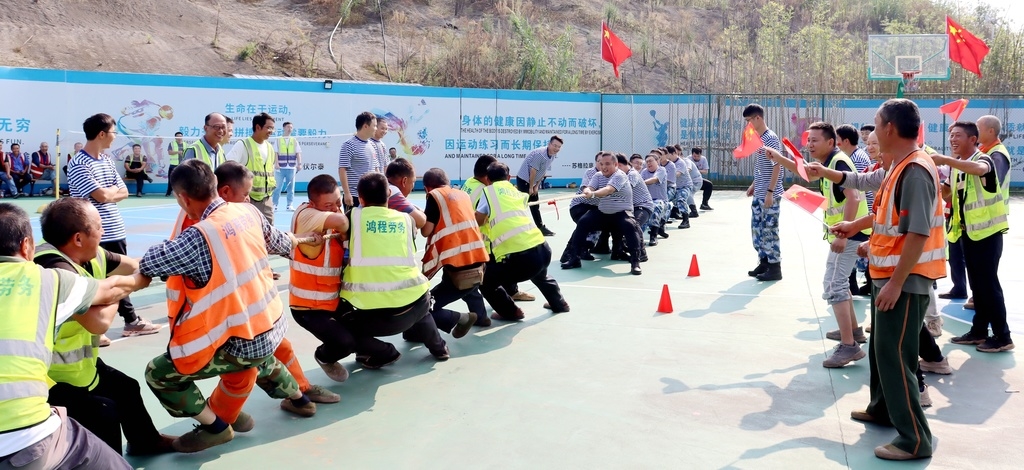 随后,为点燃所有参建人员的奋斗激情,项目工会还举办了趣味运动会,拔河比赛、篮球赛、羽毛球赛、乒乓球赛等比赛轮番上演,监理人员与工友们上百人齐聚赛场,比拼角逐,齐心协力完成每一项比赛。