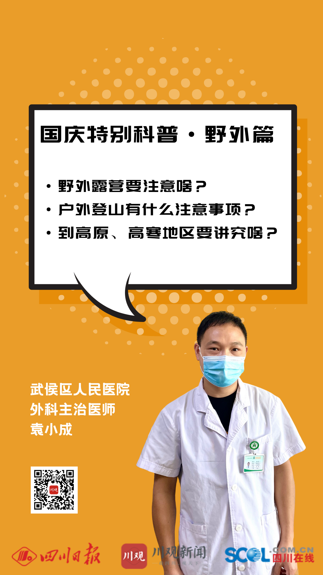为让读者朋友们在放松之余,不忘自身和家人健康,四川日报全媒体以饮食、儿童、睡眠、护眼、野外、运动6大关键词,策划了6期国庆特别科普,邀请了6名不同领域的医学专家,为不愿出游的宅家一族,或喜欢出外溜达的出游一族,给出健康提示。