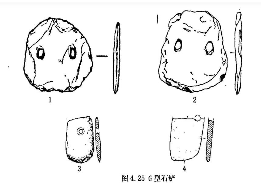 考虑到双孔石铲比较厚实,有可能它是未成型器,或者也反映出当时的打孔技术还没有特别成熟。