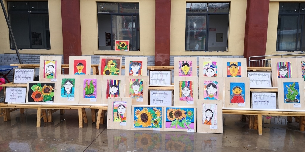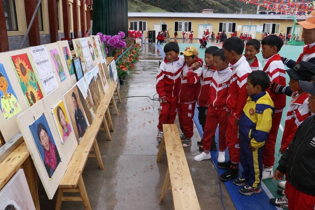 近日,甘孜州德格县错阿镇中心小学,一场特殊的美术作品展正在进行。总共60幅作品,均为过去一年以来,成都高新区支教工作队队员李世涛带领当地孩子们利用社团课程精心创作而成,以教学成果展的方式向国庆献礼。