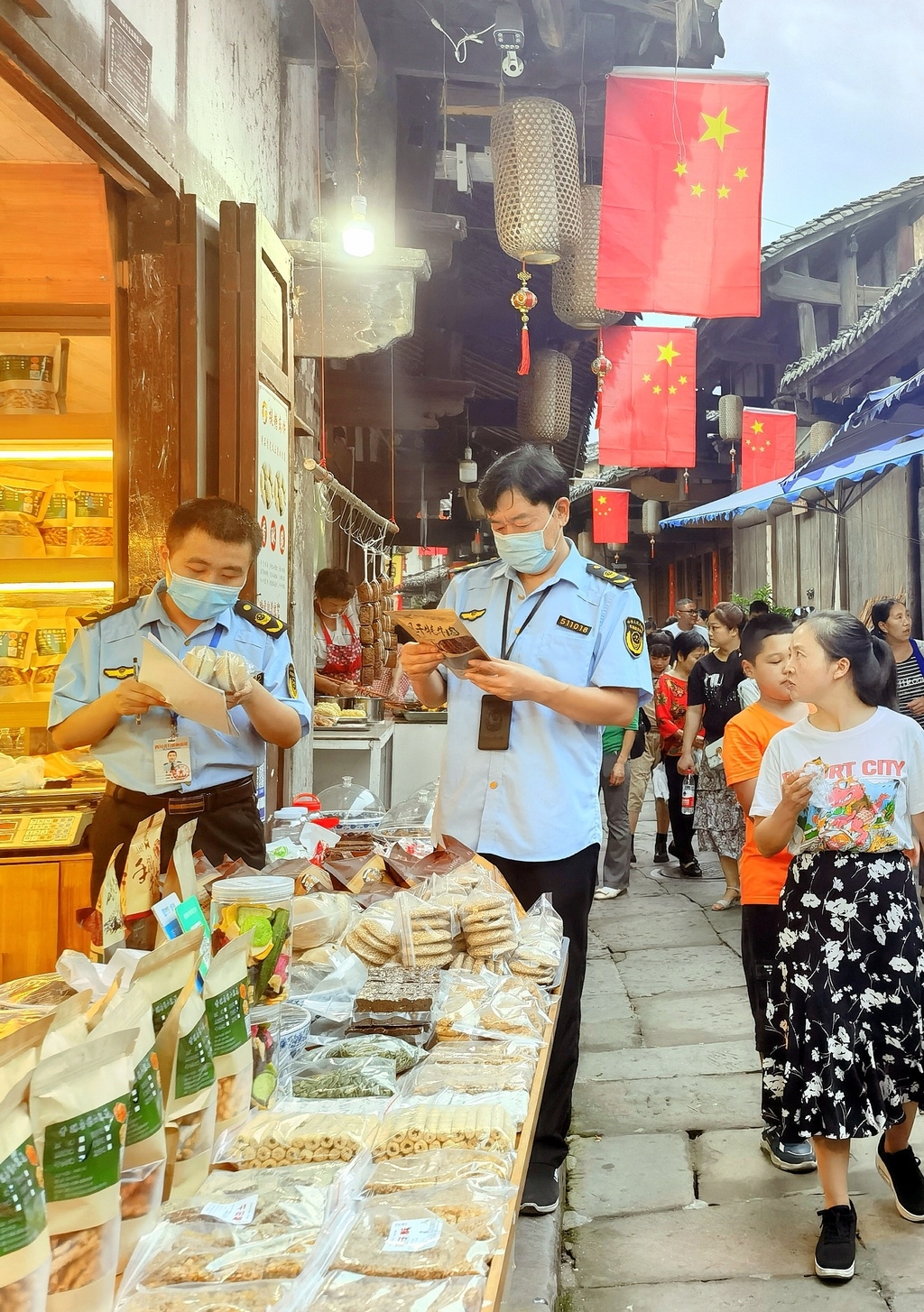 恩阳区市场监督管理局工作人员在恩阳古镇开展食品安全监督检查