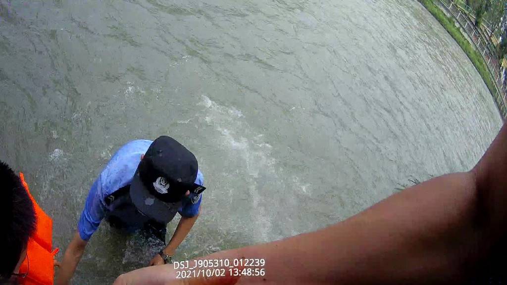 接到报警后,民警郑永刚带领辅警黄云鹤立即展开搜寻,最终在江安河边发现其身影。邝某某看见赶过来的家人和民警后,情绪更加激动,一头便跳入江安河。黄云鹤直接纵身一跃跳入离地面两米多高的湍流河水中,与宋某一起将邝某某从水中使劲往上托举,岸上的郑永刚责全力将其往上拉,最终大家合力将邝某某救上岸。