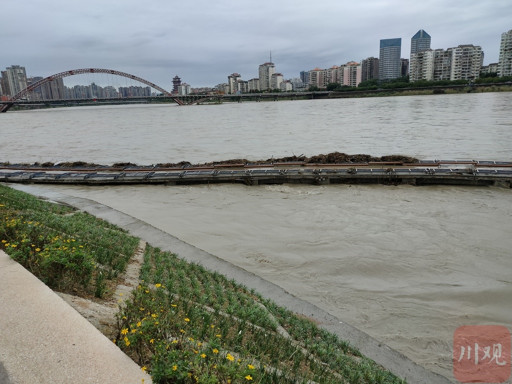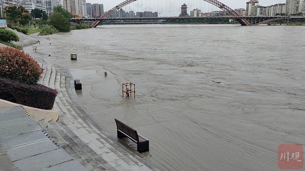 暴雨导致涪江水面上涨 部分绿道路面被水漫过