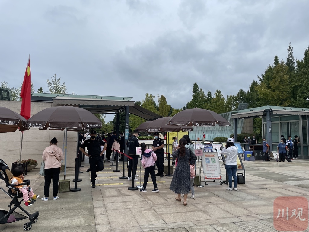 10月5日上午,来自重庆的游客陈列来到金沙遗址博物馆,在博物馆入口处,与其他游客一样,戴口罩、查健康码、扫场所码、测体温等一应俱备后,进入了博物馆。