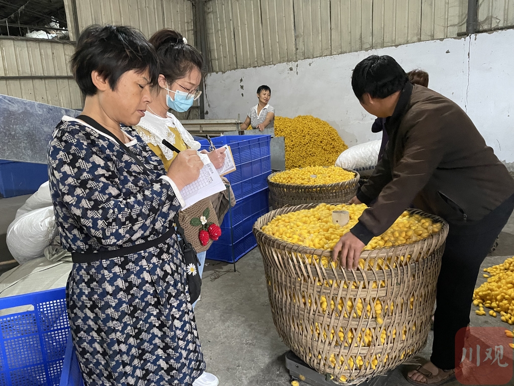 “我们早上天刚亮的时候,大概七点半就出发了。这是我们国庆期间收获的蚕茧。”潘艳君和潘虎是蓬安县金甲乡焰山村的村民,他们运送的是该村专合社今年倒数第二批黄金茧。