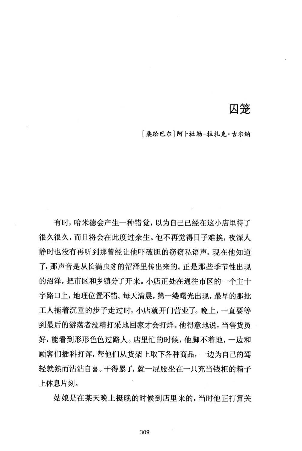 目前,国内还没有大量译介格尔纳的作品。记者查阅近年国内非洲文学相关出版物后发现,2014年译林出版社出版的《非洲短篇小说选集》中选有阿卜杜勒-拉扎克·古尔纳的短篇小说《博西》和《囚笼》。以下为《囚笼》截图: