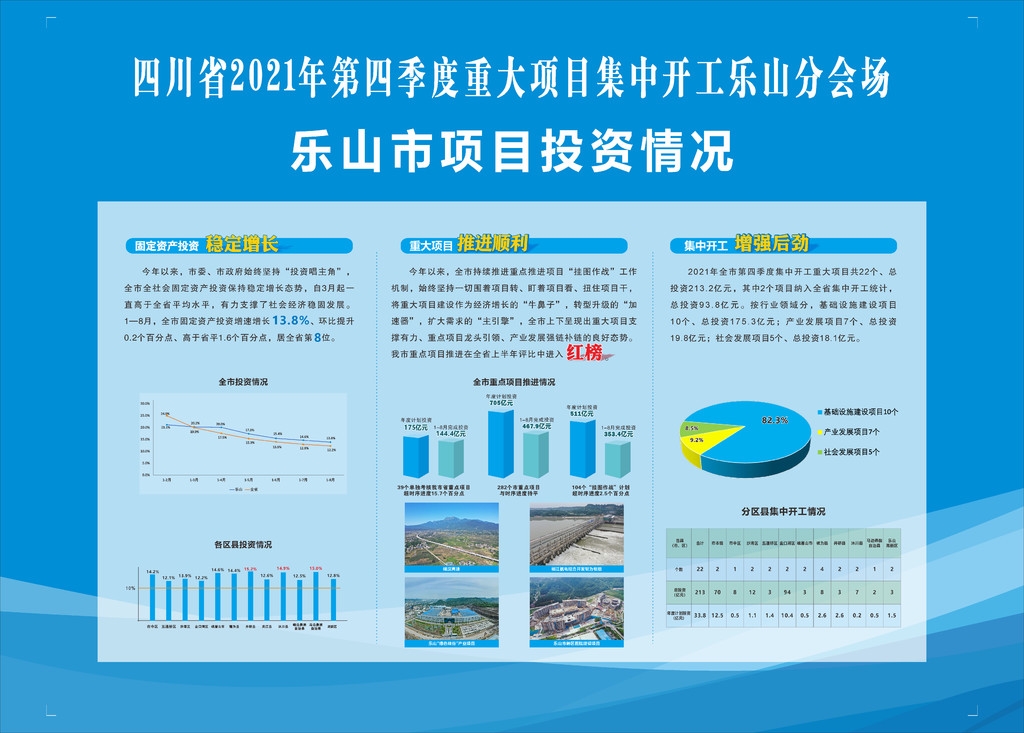 10月8日上午,四川省2021年第四季度重大项目集中开工乐山分会场活动举行。本次集中开工乐山共有重大项目22个、总投资213.2亿元。
