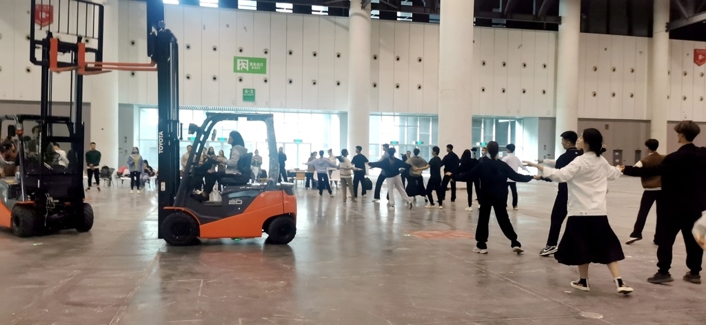随着肖斯塔科维奇第二圆舞曲响起,参加演出的表演者们跳起了优雅的舞蹈,与大家一起共舞的,还有两台同样“身姿曼妙”“灵活优雅”的叉车……