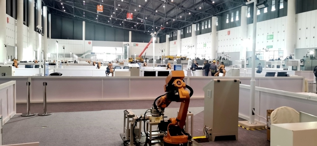 “从10月1日到7日,涉及比赛6个工种的设备陆续抵达西博城,短短几天时间内,平地起‘工厂’。”负责整体现场搭建的付尚波告诉记者,6个工种、500个工位、800余套比赛设备、上千套整体设备、最高峰600人同时施工,整个搭建要在10天内完成且达到工业要求标准。
