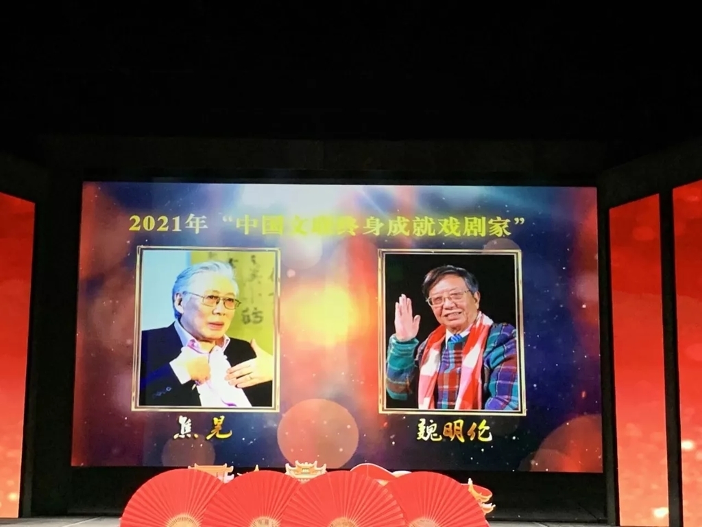 10月11日记者获悉,由中国文学艺术界联合会、中国戏剧家协会、中共湖北省委宣传部、武汉市人民政府共同主办,中共武汉市委宣传部、武汉市文化和旅游局承办的第十七届中国戏剧节近日在湖北省武汉市琴台大剧院开幕,2021年“中国文联终身成就戏剧家”表彰仪式同时举行。剧作家魏明伦、话剧表演艺术家焦晃焦晃共同获得2021年“中国文联终身成就戏剧家”荣誉称号。