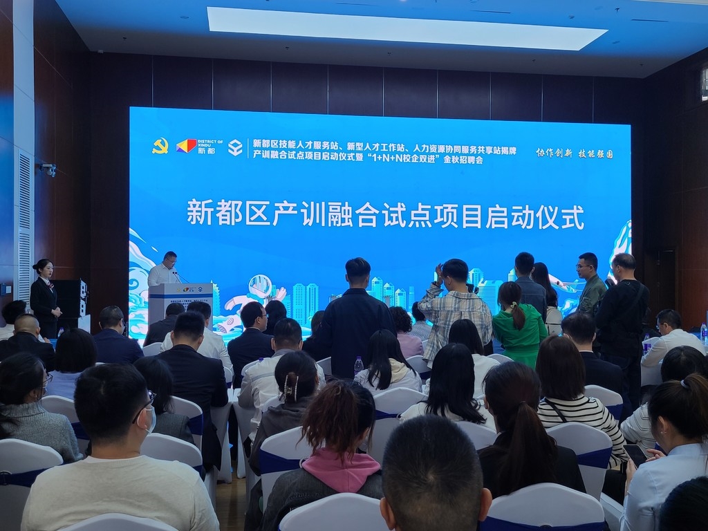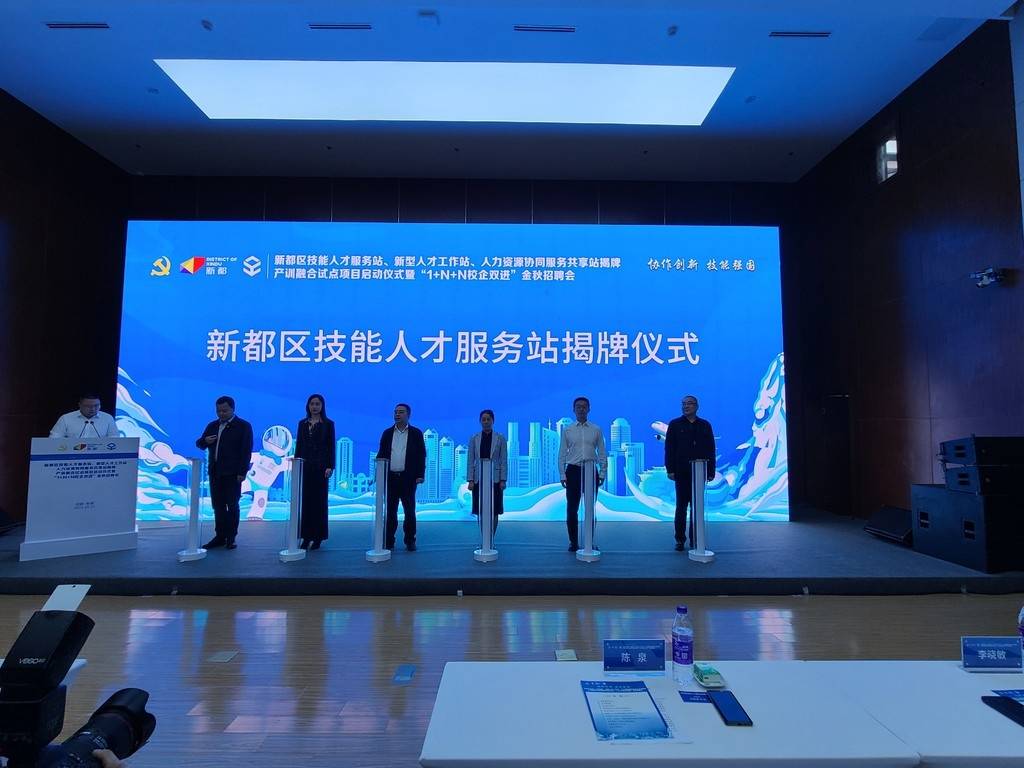 10月11日,新都区技能人才服务站、新型人才工作站、人力资源协同服务共享站揭牌,产训融合试点项目启动仪式暨“1+N+N校企双进”金秋招聘会在新都城市会客厅隆重举行。