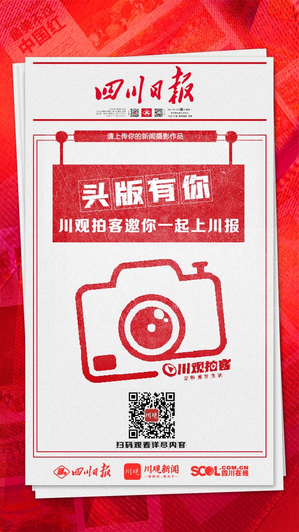 ● 想让你的摄影作品在《四川日报》上呈现吗?即日起,在川观拍客频道或视觉四川网站上传你的新闻摄影作品投稿,即有机会登上《四川日报》!我们会不定期在拍客互动群内发布“重点报道方向和选题”,请拍客们根据报道方向进行新闻摄影取材,采用几率会更高哦!