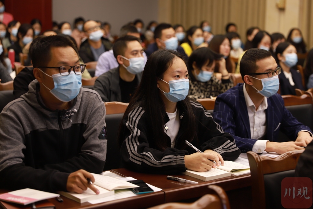 “刷,读shua,不读sua……四川本地话不少分不清普通话中平翘舌,日常大多读的平舌是错误读法。”10月11日晚8点,武胜县会展中心报告厅,国家级普通话水平测试员陈荟瑾正在进行授课。