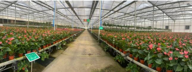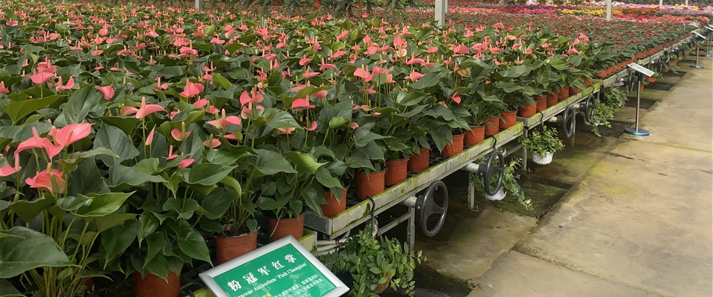与嘈杂的生产车间形成鲜明对比的,是几十公里外的攀枝花大华花卉产业园。宝莲灯、彩叶芋、喀秋莎、红掌、白掌、姜荷花、多肉等植物在25摄氏度左右的温室里肆意生长、开放。