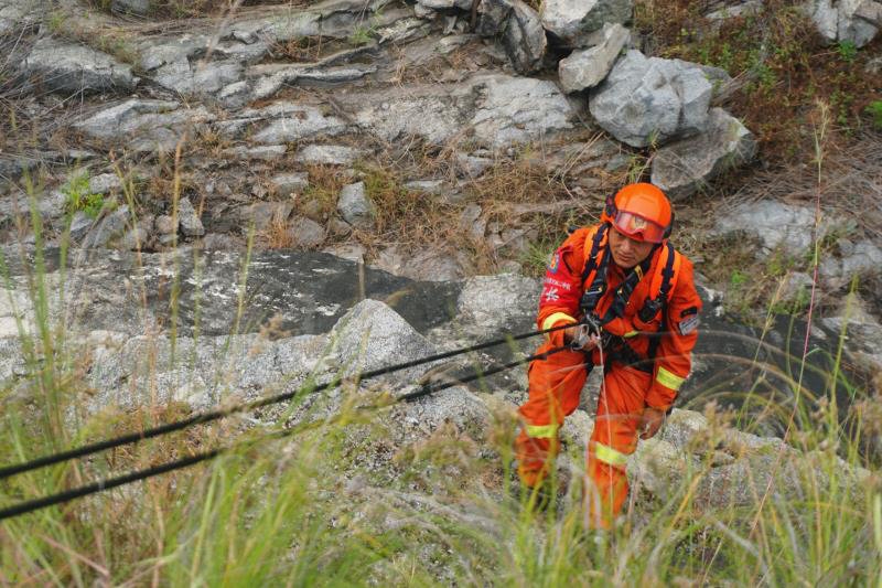 “慢一点,还有两米的距离,缓慢提升!”10月12日,攀枝花市仁和区大田镇胜利水库旁,攀枝花市森林消防支队仁和大队三班班长费康仔细地观察着地形,发出指令。该支队正在进行野外驻训课目演练,模拟悬崖40米处有着火点,利用两根50米长的绳索,采取绳索空降的方式清理烟点。