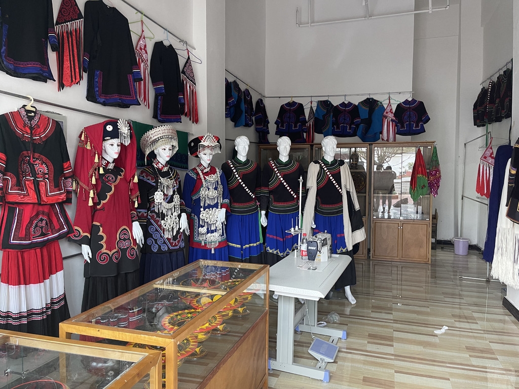 离社区百步的“非遗扶贫工坊”,几家彝族传统服饰店日渐红火。老板娘吉一扎比莫说,她不断接到成都、北京的订单,一次都在100件左右。吉一扎比莫凭一人无力完成,特别是手工彝绣,得绣娘一针一针绣,“但价格是机绣的几十倍。”她开始发动身边的绣娘一起干。很多彝族妇女都有刺绣功底,跟着她学一段时间就能出师,头脑灵活、手艺好的一个月能赚两三千元。
