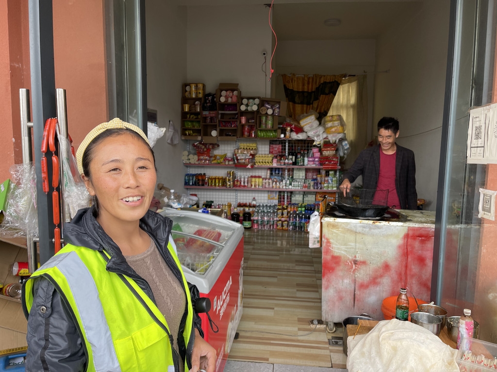 在社区帮助下,阿约小花谋得一份保洁员的公益性岗位,每月有550元工资。丈夫在县城开起出租车,一家人每年有了三四万元收入。去年,两口子在社区附近商业街开了小卖部,还顺便卖点炸土豆等小吃,好的时候一月能挣三四千元,不久家里便添了“新丁”——一辆面包车。