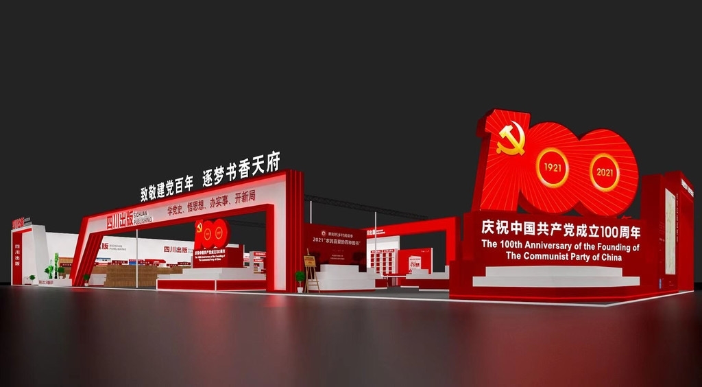 2021年是中国共产党成立100周年,本届天府书展将在主展场的入口处搭建建党100周年主题展区,面积280平方米,以学党史、悟思想、办实事、开新局为展陈思路,设置习近平总书记重要著作、“四史”学习图书、2021年农民喜爱的百种图书等展区。
