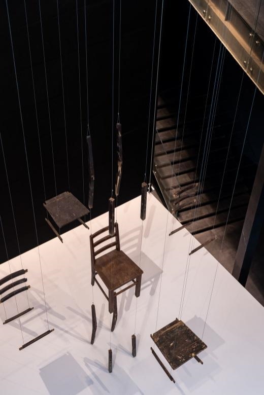 此次展览既有大家作品,也有新秀的创意之作。比如,在知美术馆的一层,可以看见展厅正中高悬的一组椅子——这是墨西哥著名艺术家达米安•奥尔特(Damián Ortega)本次参展作品《H. L. D.(高、长、深)- 汇合处》,点出了《一把椅子,》展览的主旨;极简流畅的设计、从空而降的悬挂呈现方式都给人观看椅子、观看生活的全新角度。此作品曾在巴黎蓬皮杜艺术中心、泰特现代美术馆(伦敦)和 MoCA(纽约)展出,本次展览也是首次在亮相中国。