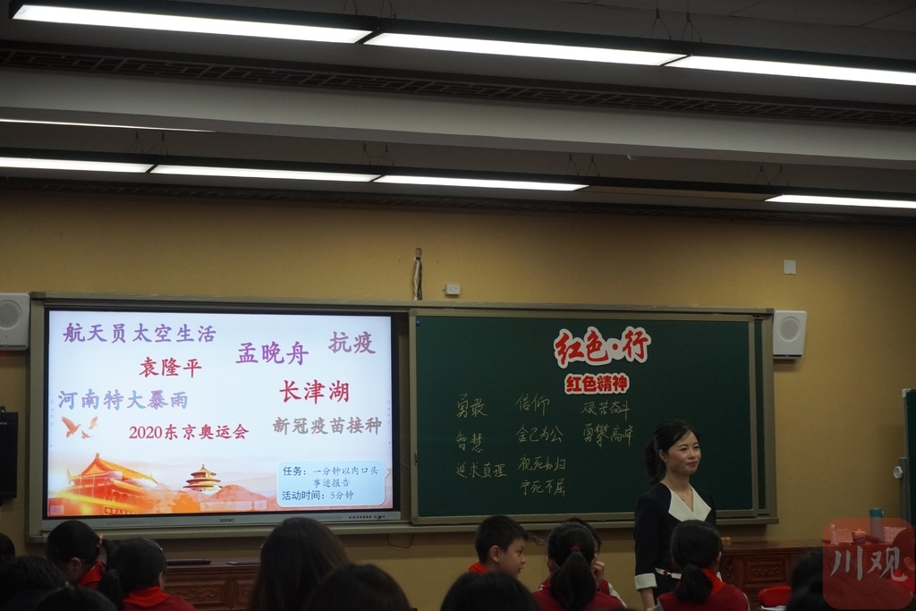 四川天府新区第四小学赵明老师主题班会展示除了感染力极强的一面,现场还有班主任展示了非常有趣的互动课堂。李静老师让同学们充分“利用”前来观摩的嘉宾老师,向他们询问黑板上的关键词,并形成一分钟事迹口述。这种形式充分调动了课堂氛围,受到了观众的一致好评。