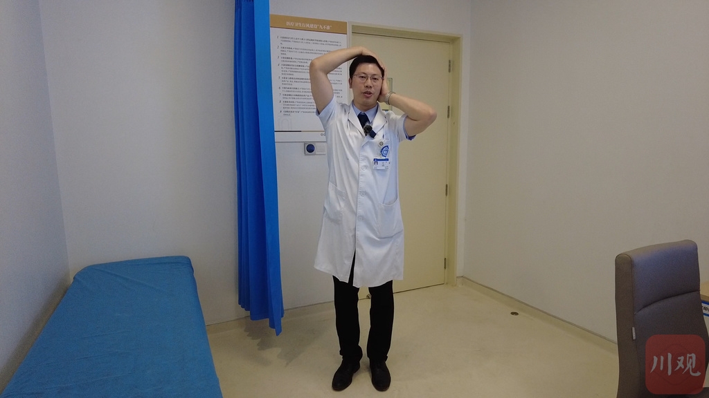那么,有没有一些简单易操作的运动方法可以帮助我们缓解骨骼肌肉慢性疼痛的症状,让人们可以在家里、办公室、户外广场等地都可以使用的呢?周教授请四川大学华西医院骨科副教授王贝宇为我们现场做了动作示范,戳视频赶快学起来吧!
