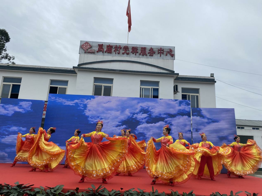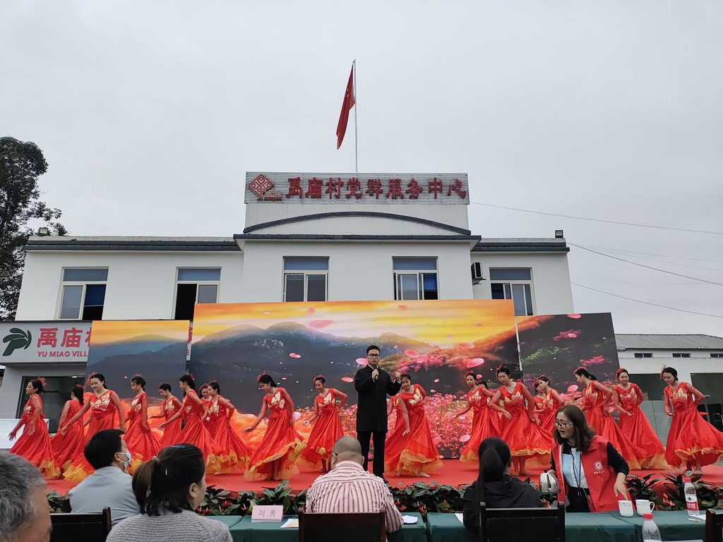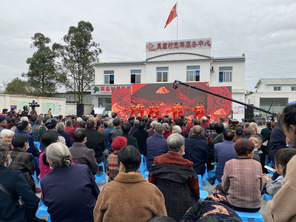 10月14日上午,成都市郫都区禹庙村分外热闹,庆祝重阳佳节、弘扬敬老爱老传统,村里为全村近千名老人举办了一场“情满禹庙、欢度重阳”文艺汇演活动,老人们在家人的陪伴下一同观舞赏歌,欢度重阳佳节。