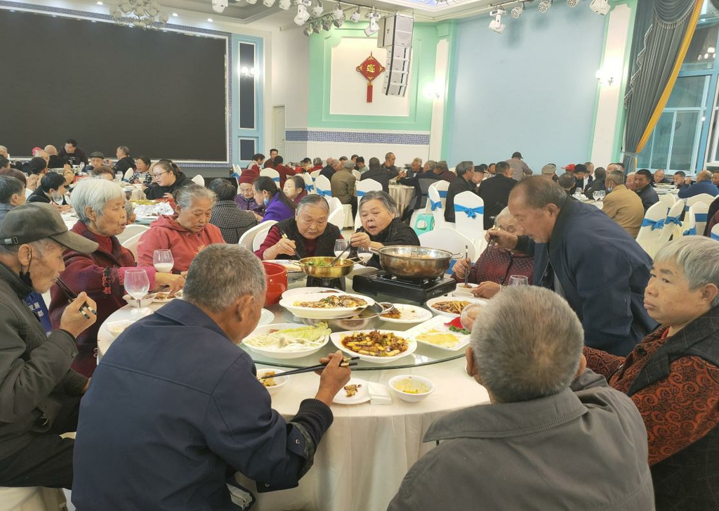 精彩的节目在台上展示,阵阵掌声和欢笑声从台下传来。上午的表演结束后,由当地爱心企业及人士赞助,近千名60岁以上老人共聚当地农家乐大院,享受着属于他们的重阳节午餐,充分展现出中华民族千年来敬老爱老的传统美德。