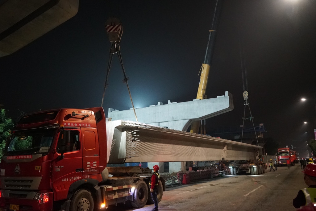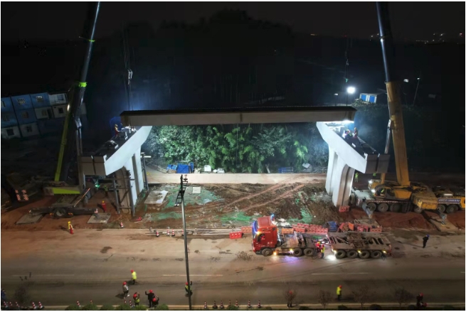 10月13日,从蜀道集团传来消息:当天凌晨,经过4个多小时奋战,六片预制箱梁稳稳架设在成金青连续高架桥桥墩上,G5成绵高速扩容项目成都段高架桥首跨梁架设成功,标志着成都段连续高架桥施工从桥梁下部结构转入上部结构,为项目全线如期贯通奠定了坚实的基础。