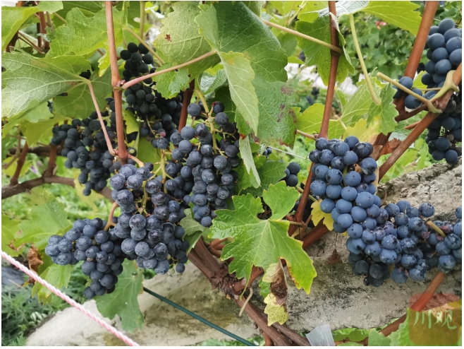 枝头上,挂满了一串串个头小小,白色、紫色的葡萄。“这些都是酿酒葡萄,成熟期在10月中下旬。”刘伟介绍,园区现有酿酒葡萄5000亩,从2013年开始,园区经营主体——九寨沟县罗伊农业有限公司与省农科院在规划设计、建园管理等方面开展了广泛的科技合作,引进筛选出了赤霞珠、霞多丽等优质葡萄品种,还以“九寨庄园红酒”为主题,融合了高山秘境、古朴村落、葡萄基地、花海等景观特色,发展农旅融合产业。