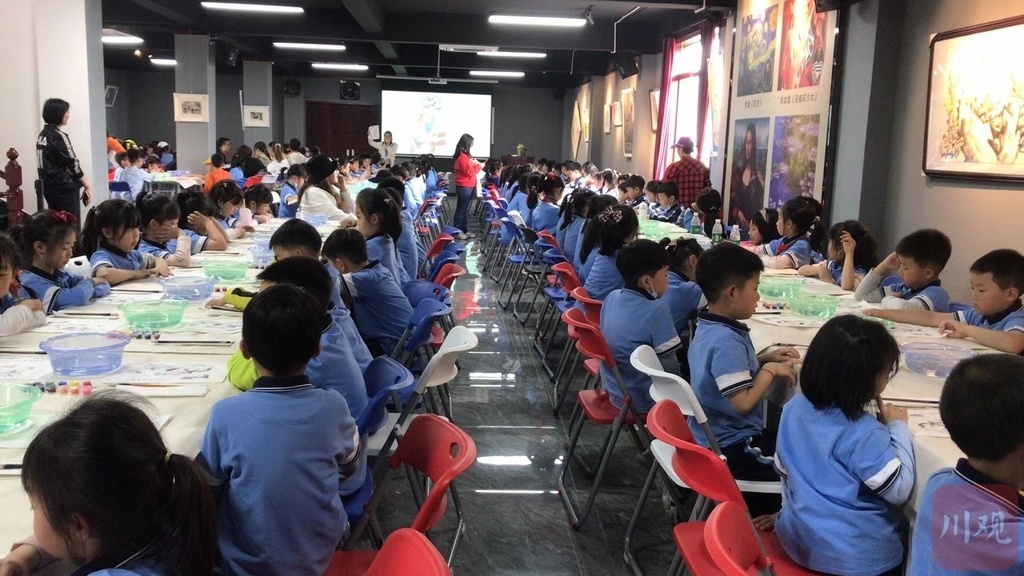在绵竹年画博览园,50余名孩子参观了年画艺人现场创作,还拿起画笔和调色盘有模有样地学起来,童子、门神等一幅幅各具特色的年画作品跃然纸上。“这种边玩边学的模式,不仅能让孩子感受非遗的魅力,还能提升动手能力。”看着女儿体验了绵竹年画印版、彩绘等制作工艺,成功创作出一幅色彩明亮的绵竹年画,家长蒋俊开心地表示。