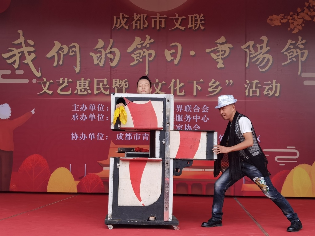“滚灯好看,魔术也好看,节目闹热,这个重阳节过巴适了!”成都市青羊区康河社区一位80岁上下的老人笑得合不拢嘴,希望此类文艺下乡的活动多多搞下去。