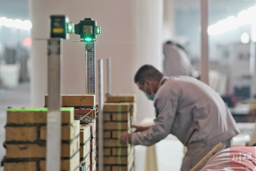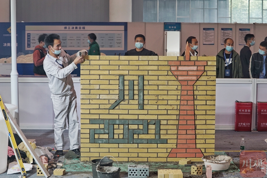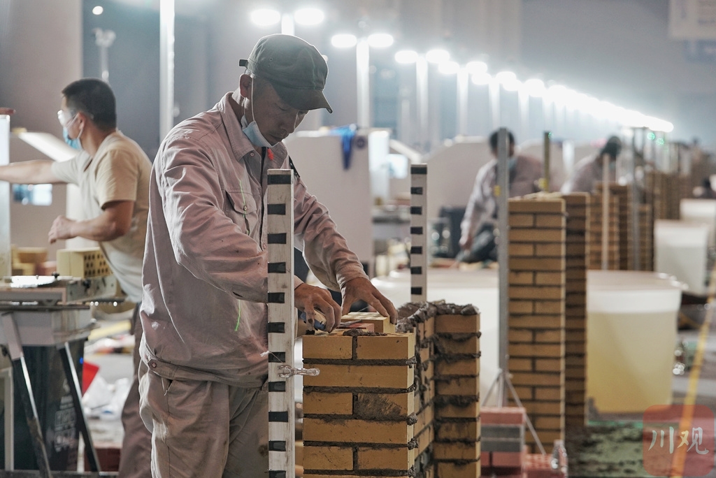 除了作品本身添加了成都电视塔、“川”字纹等四川元素,红黄相间的配色也和谐温馨。除此之外,横平竖直的结构、均匀等宽的砖缝都是考察的重点。选手们有条不紊的搭建,在方寸之间尽显绝妙的技艺。