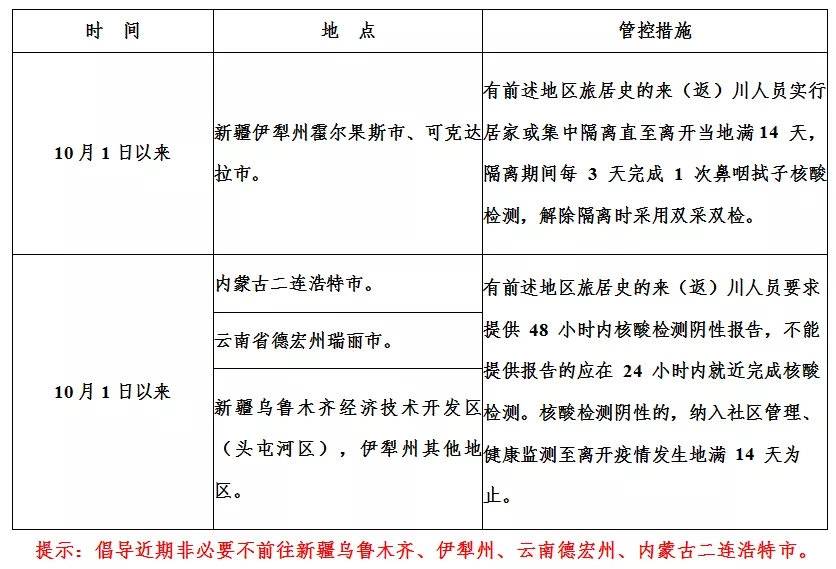 国内部分地区来(返)川人员管理措施