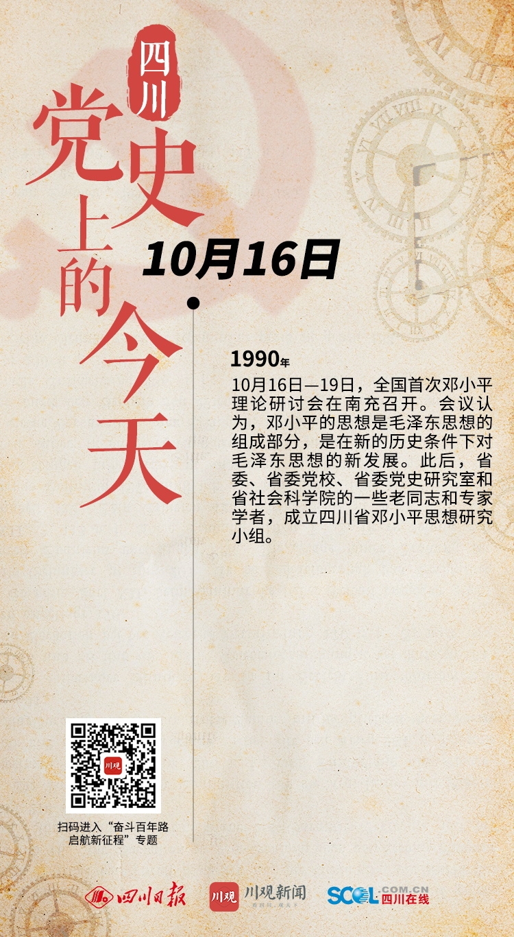 1990年 10月16日—19日,全国首次邓小平理论研讨会在南充召开。会议认为,邓小平的思想是毛泽东思想的组成部分,是在新的历史条件下对毛泽东思想的新发展。此后,省委、省委党校、省委党史研究室和省社会科学院的一些老同志和专家学者,成立四川省邓小平思想研究小组。