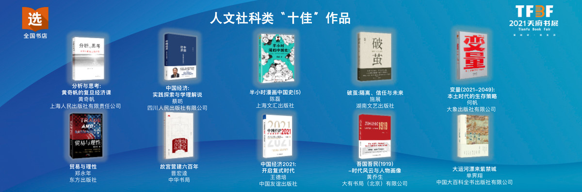 10月16日,“全民阅读·全国书店之选”十佳作品在天府书展上正式发布,由上千家书店投票推选的50本“十佳”作品出炉。