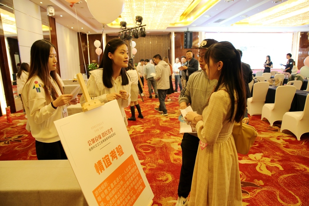 活动现场,破冰游戏打破了年轻人彼此的隔阂和陌生感,融入现场欢乐的气氛中。男女嘉宾们通过“心动十秒”等游园游戏相互协作、相互了解,彼此留下了良好的印象;在永生花、干花造纸术等手工制作环节中,大家相互配合、相互讨论,创作出了一个个极富创意的作品并将作品送给心仪之人;在互动交流环节,男女嘉宾们大胆示爱,将此次活动推向了高潮。