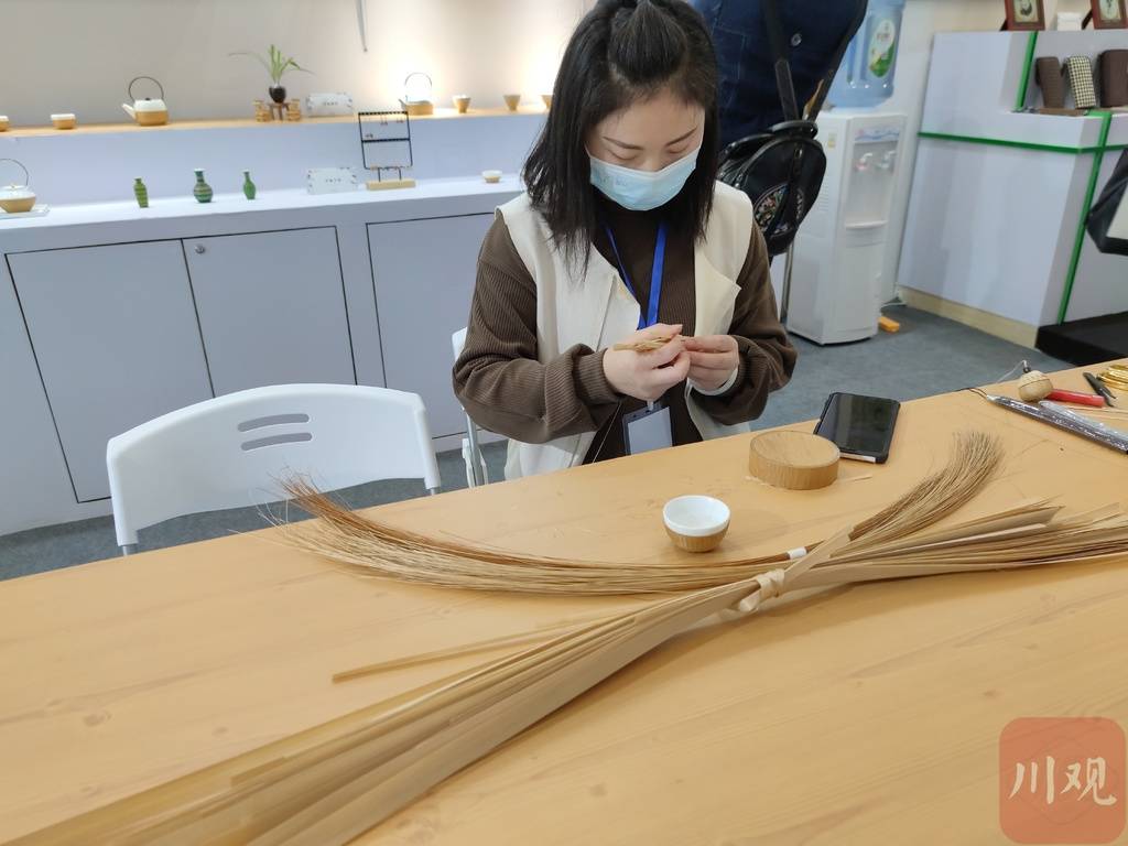 对面,“工业+”元素满满的兴文展馆与之对应。该馆以“以竹代塑·绿色生活”为主题,定位“国潮新竹器”的文创产品吸人眼球。“产品主要分为五大系列,主要应用于酒店、餐饮和长途客运行业。”兴文创新竹制品发展有限公司董事长助理黄强介绍,产品将在竹海博物馆中开设专卖店进行销售。