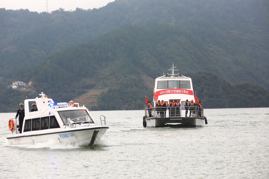 “呜……”汽笛鸣响,执法船劈波斩浪,向西飞驰。10月19日,2021年度川陕甘跨省交界水域禁捕联合执法行动在广元市青川县幸福岛启动。