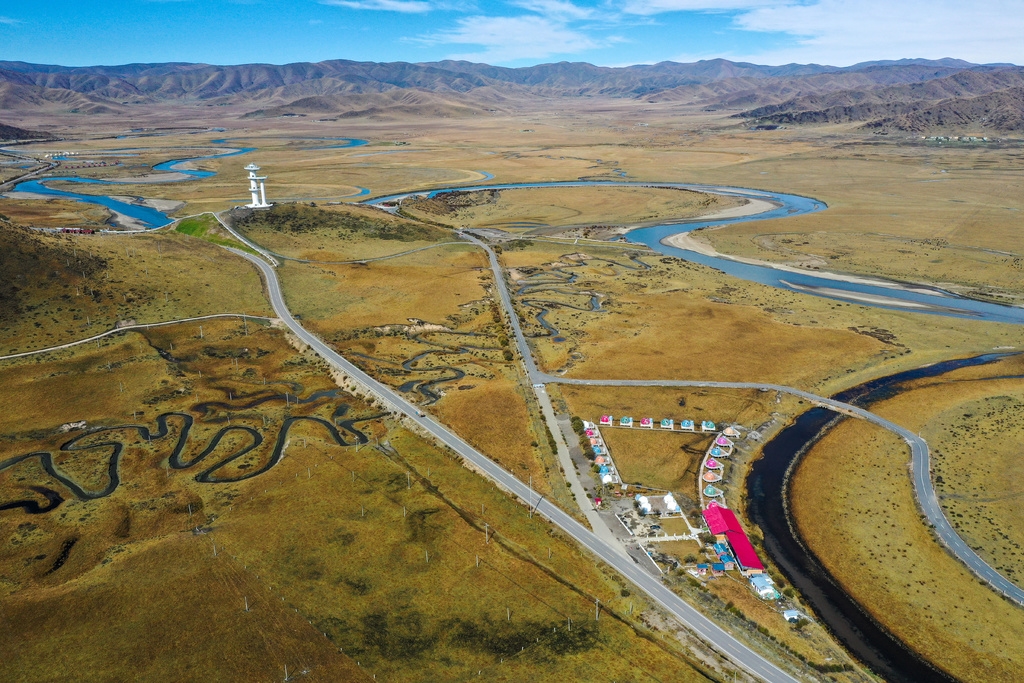10月19日,“母亲河畔的中国”网络主题宣传活动首站来到了距离红原县城3公里的月亮湾景区。从空中鸟瞰,嘎曲河蜿蜒九曲穿越景区,美丽宽广的草原就像块柔软的绿色地毯铺在梦幻的大地上,清澈的河水在草原上划出一道道舒缓优美的弧线,恰似一轮轮新月。