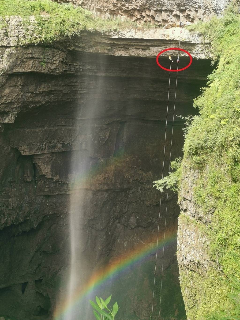 乐山沙湾区牛石镇安池村硝斗岩,危险的速降现场(四川在线资料图片,网友供图)