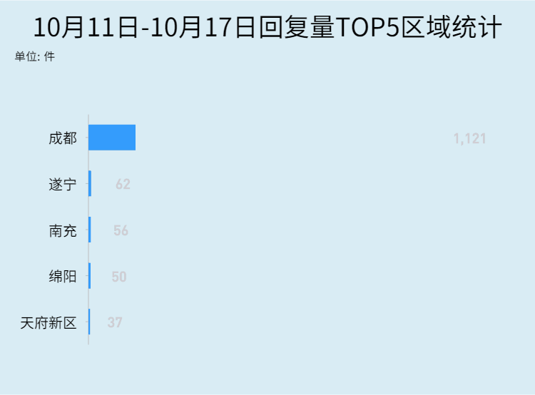 上周,全川回复量排名前五的区域为