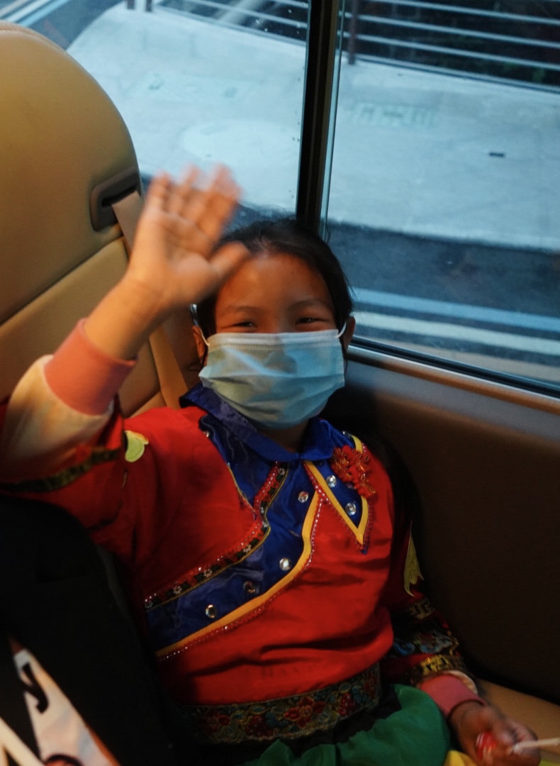 10月20日,10名攀枝花米易县的孩子从省妇幼保健院启程,坐上了医院安排的免费回程车。