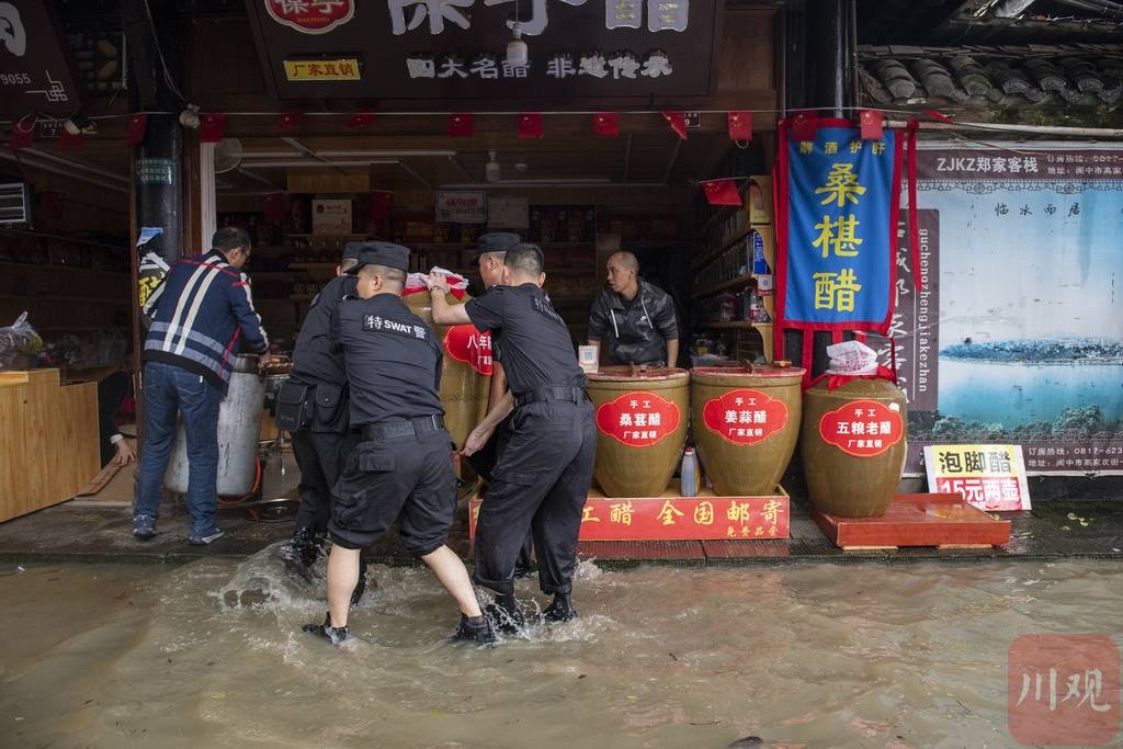 嘉陵江洪峰过境的阆中古城救援 王玉贵 摄