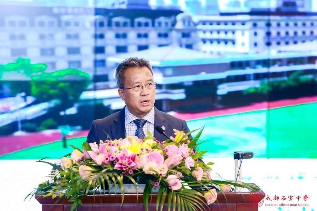 四川省中学校长协会会长、成都石室中学校长田间作主题报告。学校供图。