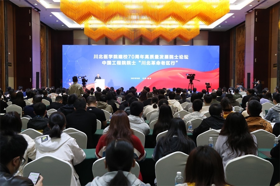 10月23日,川北医学院举行了建校70周年高质量发展院士论坛——中国工程院院士专家“川北革命老区行”活动。中国工程院院士、南开大学党委副书记、校长曹雪涛教授,中国工程院院士、生物芯片北京国家工程研究中心主任程京教授,中国工程院院士、传染病预防控制国家重点实验室主任徐建国教授,国家免疫生物制品工程技术研究中心主任邹全明教授,中国工程院三局办公室主任张文韬,南充市市委、南充市人民政府相关领导莅临论坛。论坛由川北医学院党委副书记、校长杜勇主持。