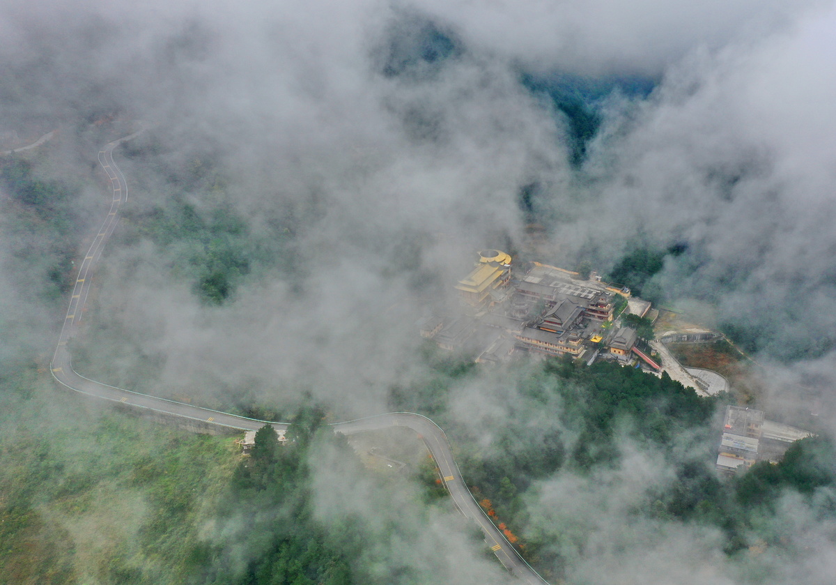 四川广元,武则天的故乡,闪烁着一颗璀璨明珠——四川天曌山国家森林公园。10月24日,位于广元市利州区的天曌山云雾缭绕,房屋、山路、山林时隐时现,呈现出一幅幅纯美的水墨画卷,宛如人间仙境。