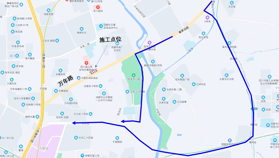 10月25日,记者从成都市交警五分局获悉,因万年路杉板桥南一路交叉口地下自来水管网渗漏,自来水公司计划10月29日晚22时至10月31日22时进行抢修,占用万年路杉板桥南一路口进城方向靠中心绿化带2条机动车道进行开挖施工。