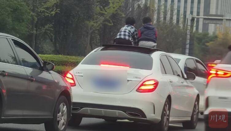 10月26日,四川在线客户端接到川观拍客投稿称:10月23日下午18时左右,在成都天府大道中段,车多缓行,两名儿童从一辆白色小轿车车顶天窗爬出,直接坐在了车顶上嬉戏玩耍,期间还放开双手,全程画面令人心惊肉跳。川观拍客告诉记者,整个过程中没有看到家长制止,直到拍客驶离这一路段,依然看到两个孩子坐在车顶上。