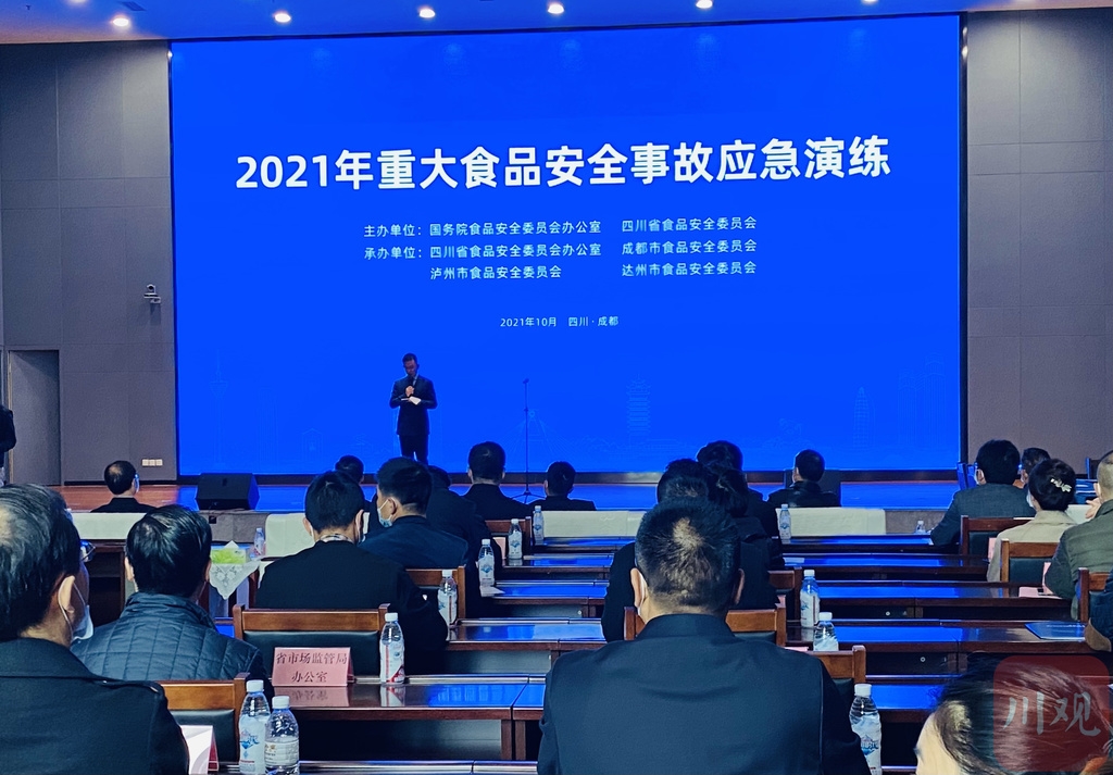 10月27日下午,2021年重大食品安全事故应急演练在川举行。省委常委、副省长、省食安委副主任李云泽在成都主会场观摩。